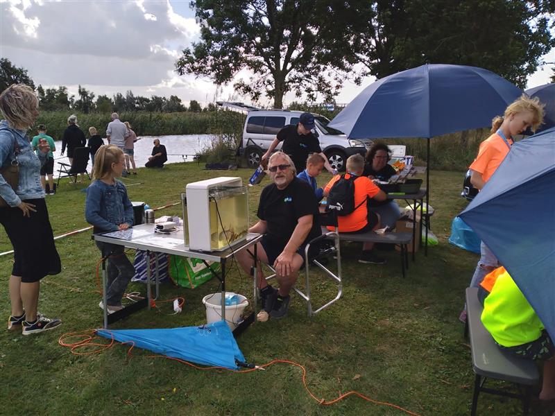 Diverse foto''s van de uitzetting van plusminus 800 spiegelkarpers in de Friese Wateren