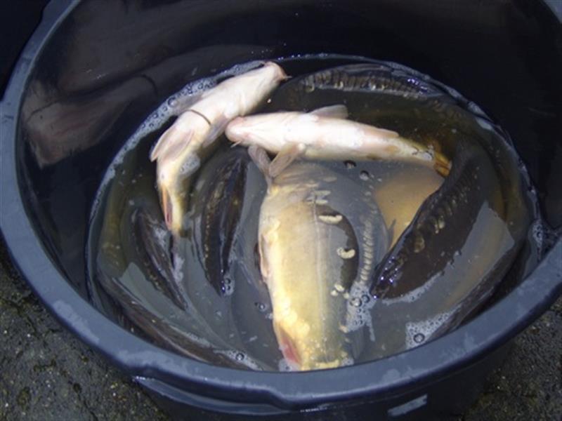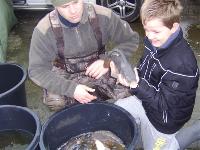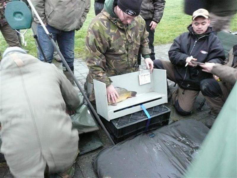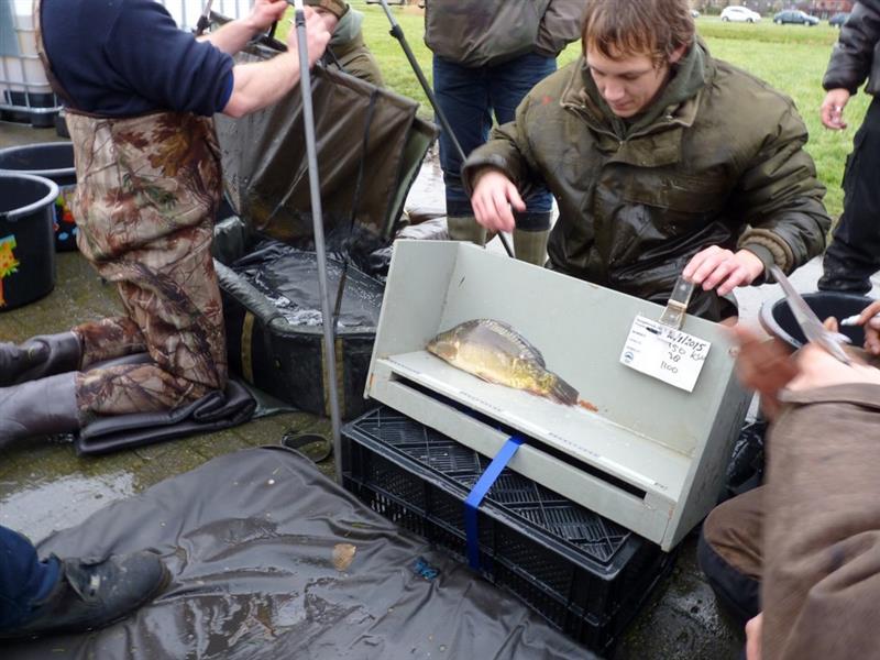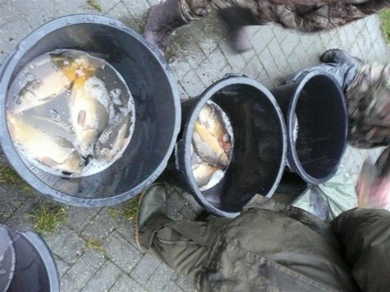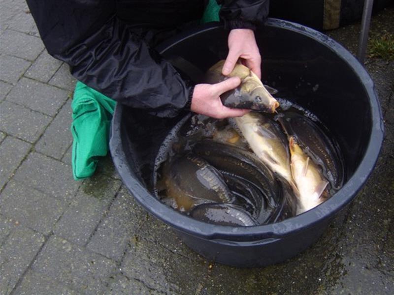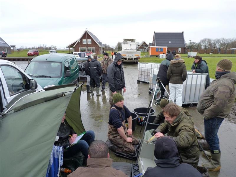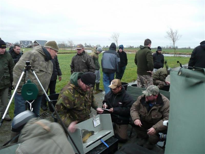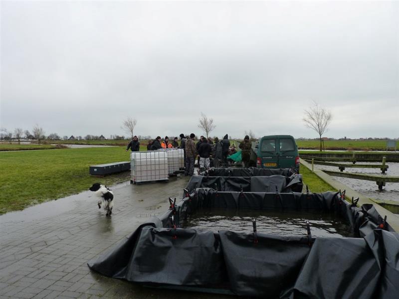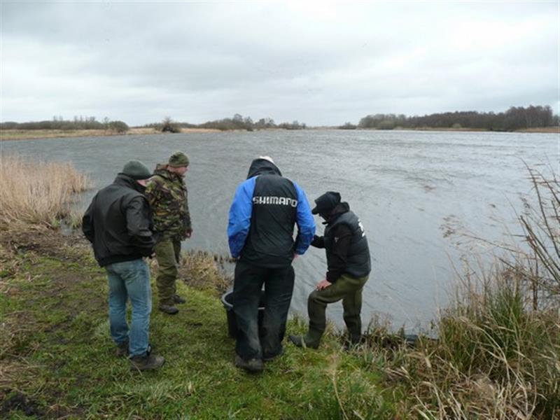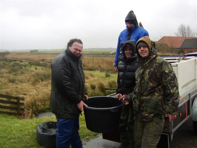 Diverse foto”s van de uitzetting van plusminus 800 spiegelkarpers in de Friese Wateren