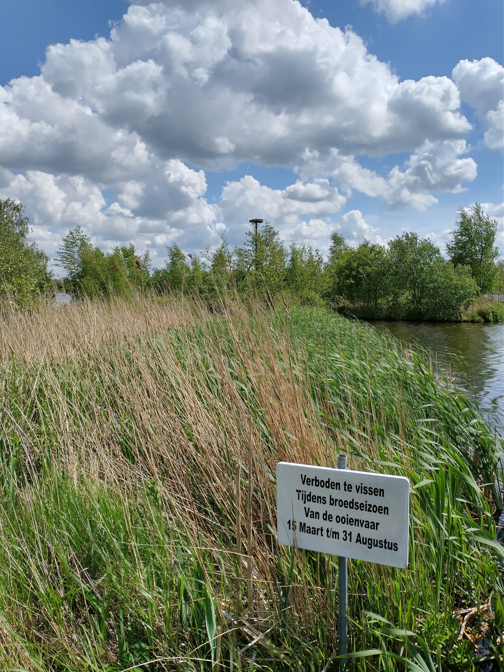 Het gaat om het eiland waar een ooievaarsnest op paal aanwezig is. Deze stond tot twee jaar geleden op het uitstulpsel aan het ‘vaste land’ tegenover het eiland, maar is nu op het eiland geplaatst.