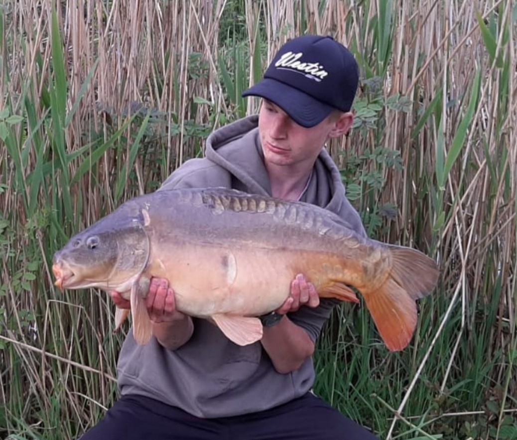 Mike Wormmeester met een fraaie karper, gevangen in de wateren van de Kooilanden.