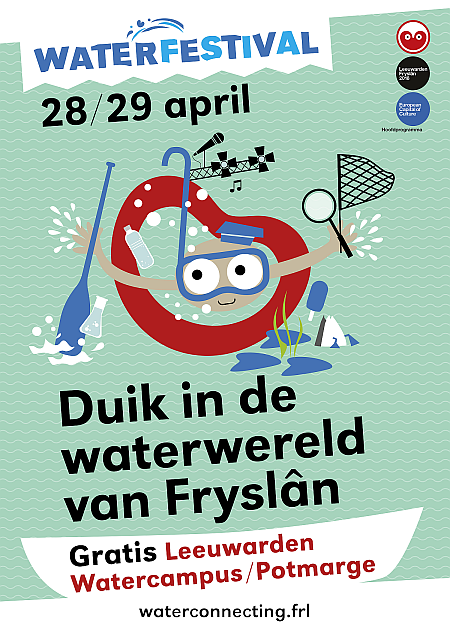 Het weekend van 28 en 29 april blijft niet droog… Sterker nog, reken maar op veel water! In dat weekend kun je namelijk gratis naar het Waterfestival. Friesland is waterland en Leeuwarden is de ‘Capital of Watertechnology’ en dat zul je weten ook! Een weekend vol waterfun voor het hele gezin! Verwonder je over coole kunst en theater met water. Riskeer een nat pak. Verdiep je in de onderwaterwereld en leer van alles over de kwaliteit van ons water. Slenter gezellig rond en sta eens bij stil het feit dat we in Friesland nog steeds droge voeten hebben… Wat dat betreft houdt water ons wel bezig! Dus kom kijken, doen en leren en word blij dat er zoveel water is! Het festivalterrein bij de Watercampus en de Potmarge in Leeuwarden is vanaf 10:00 tot 17.00 uur geopend.